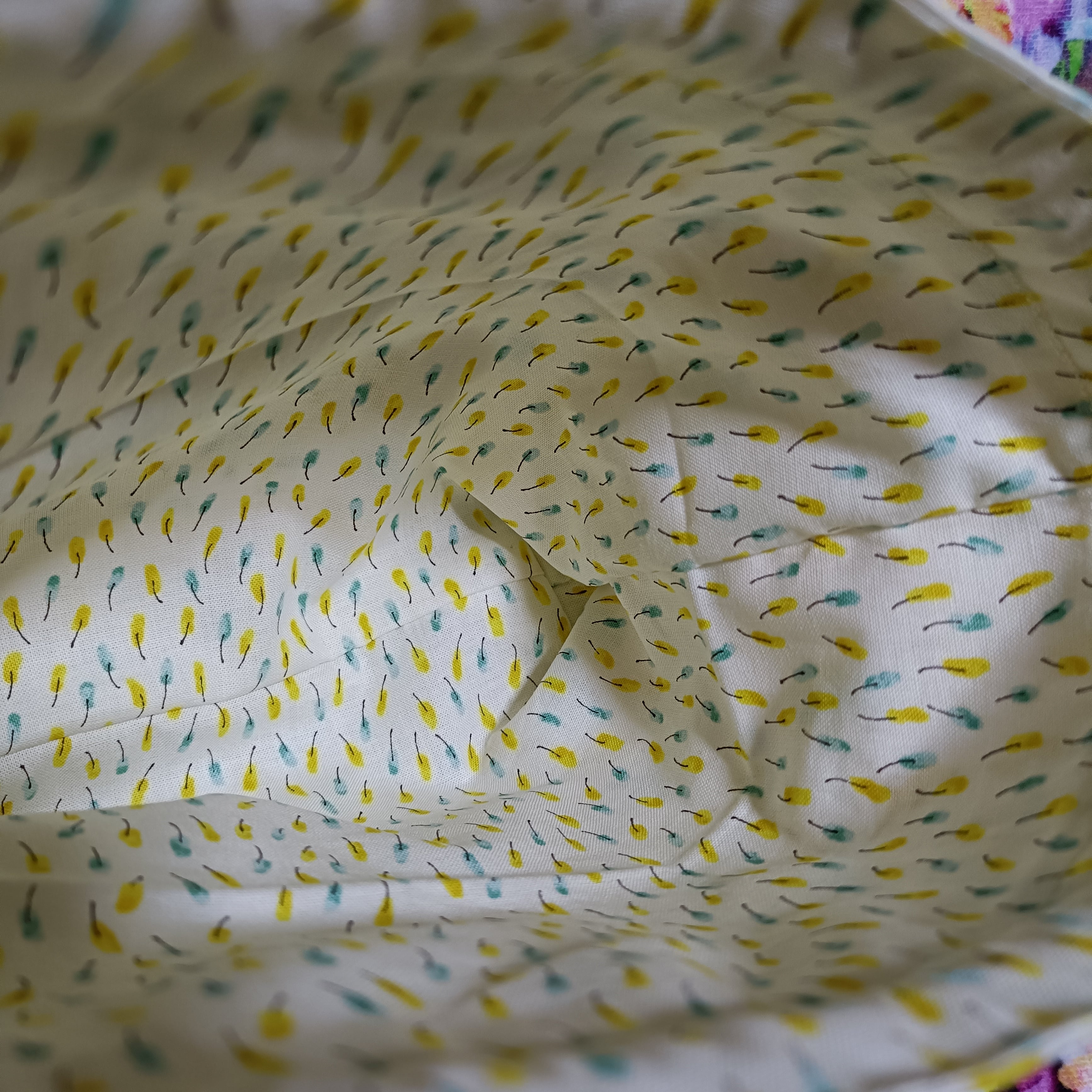 イエローとグリーンのかわいい小鳥柄の生地です。